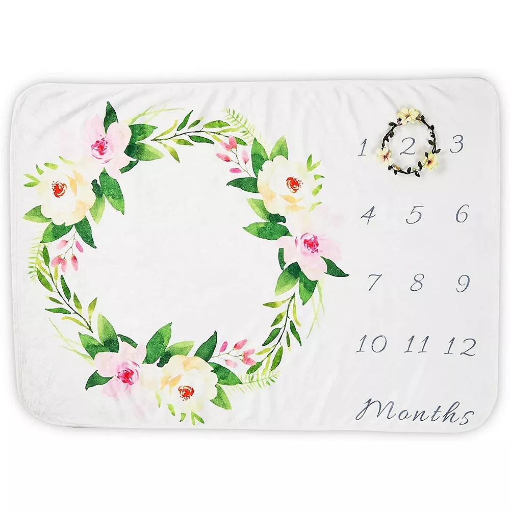 - What’s Included: Includes 1 floral baby blanket with a flower wreath to mark monthly milestones; 2 pieces total