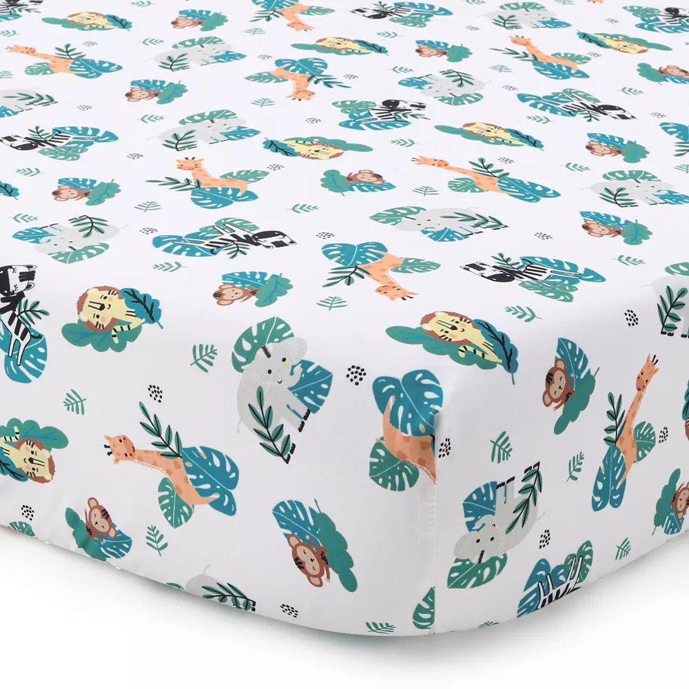 Your little one will be ready for their safari adventure with this 3-piece crib bedding set by The Peanutshell featuring a quilt, bed skirt and fitted crib sheet.