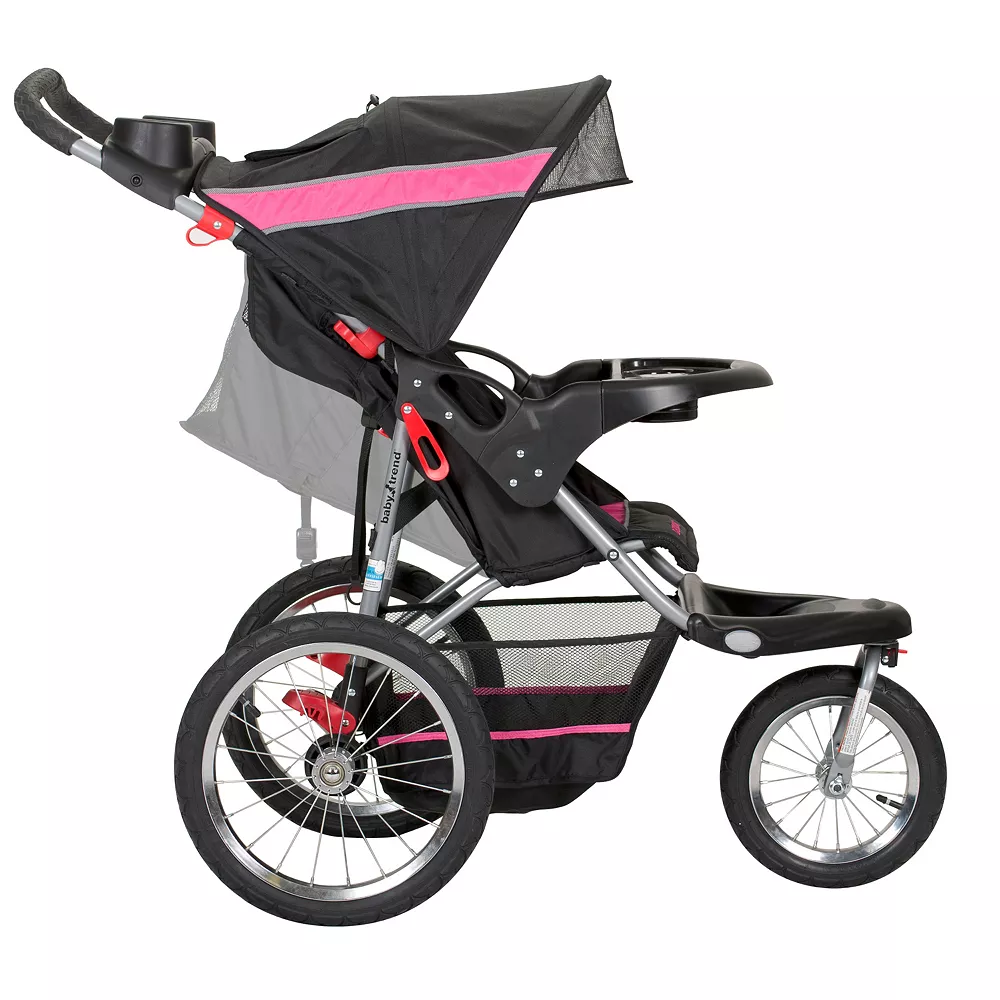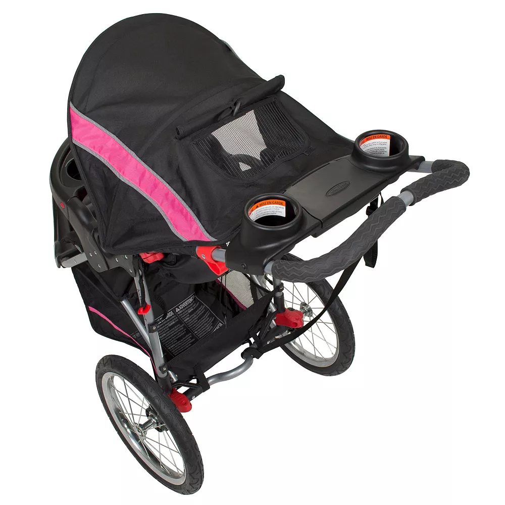 This Baby Trend Expedition jogger stroller features a front swivel wheel that can be unlocked for low speed maneuvering or locked into place for jogging.