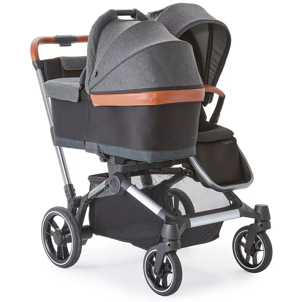 This side-by-side stroller by Contours easily converts from one to two children in a breeze.