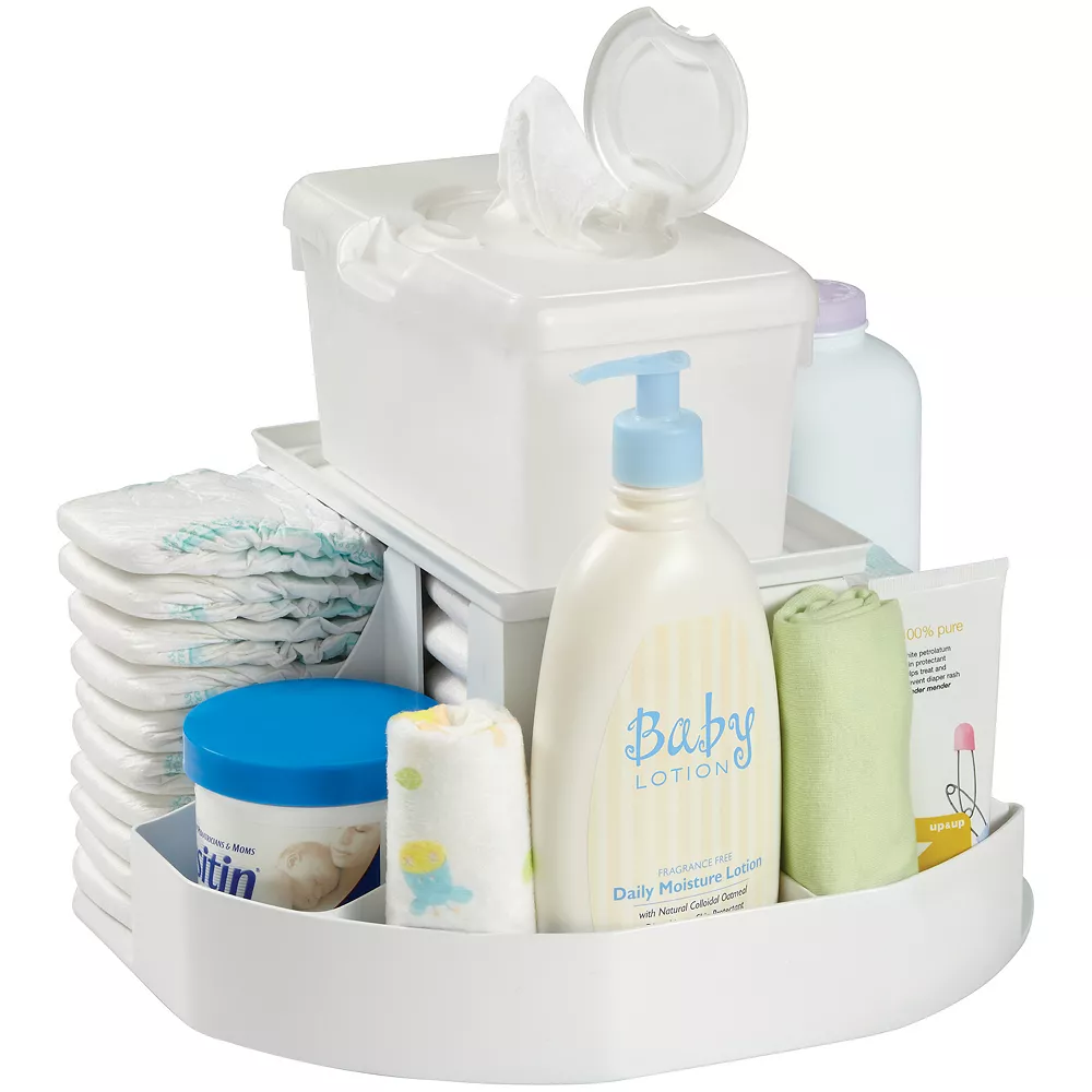 Get quick and easy access to all your diaper changing essentials with this Dexbaby The Spin turntable-style changing station.