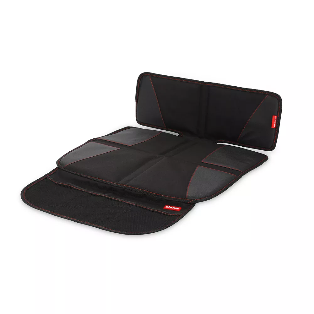 Protect your car’s seats from the permanent indentations caused by child safety seats with this Diono seat protector. In black.