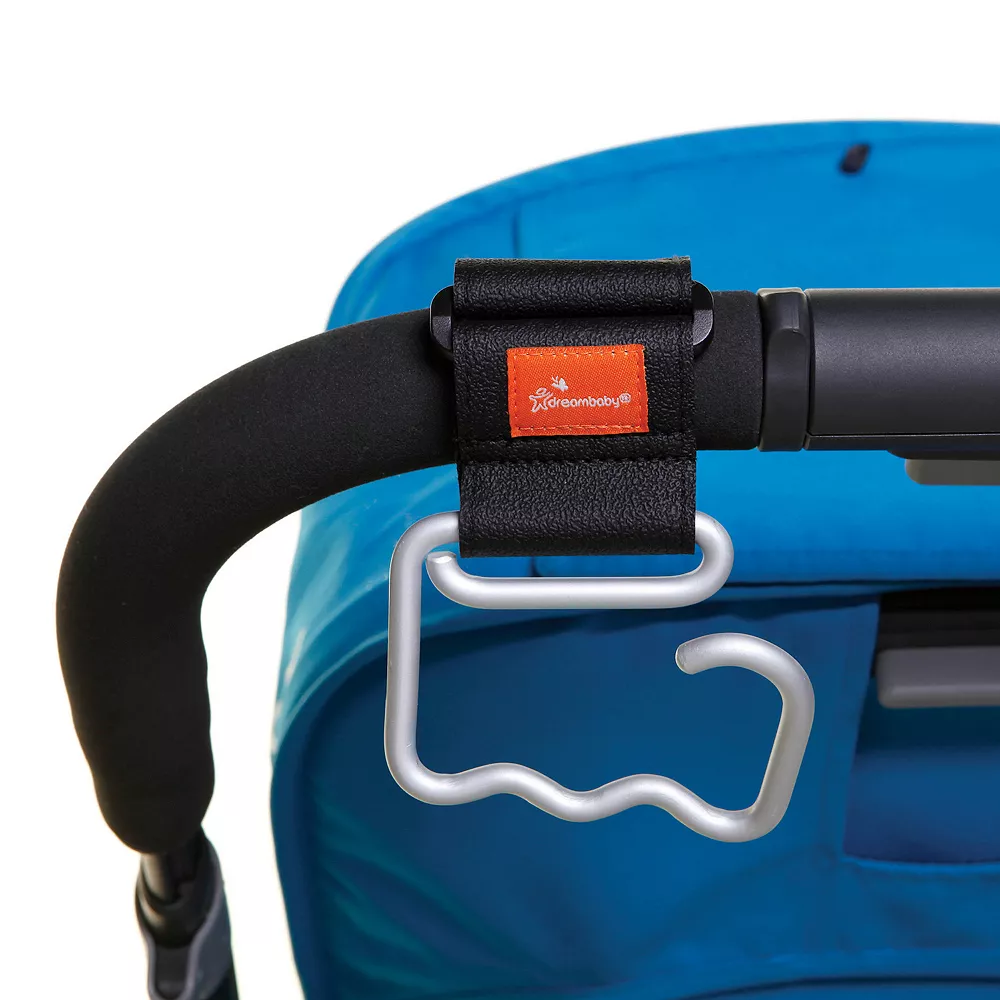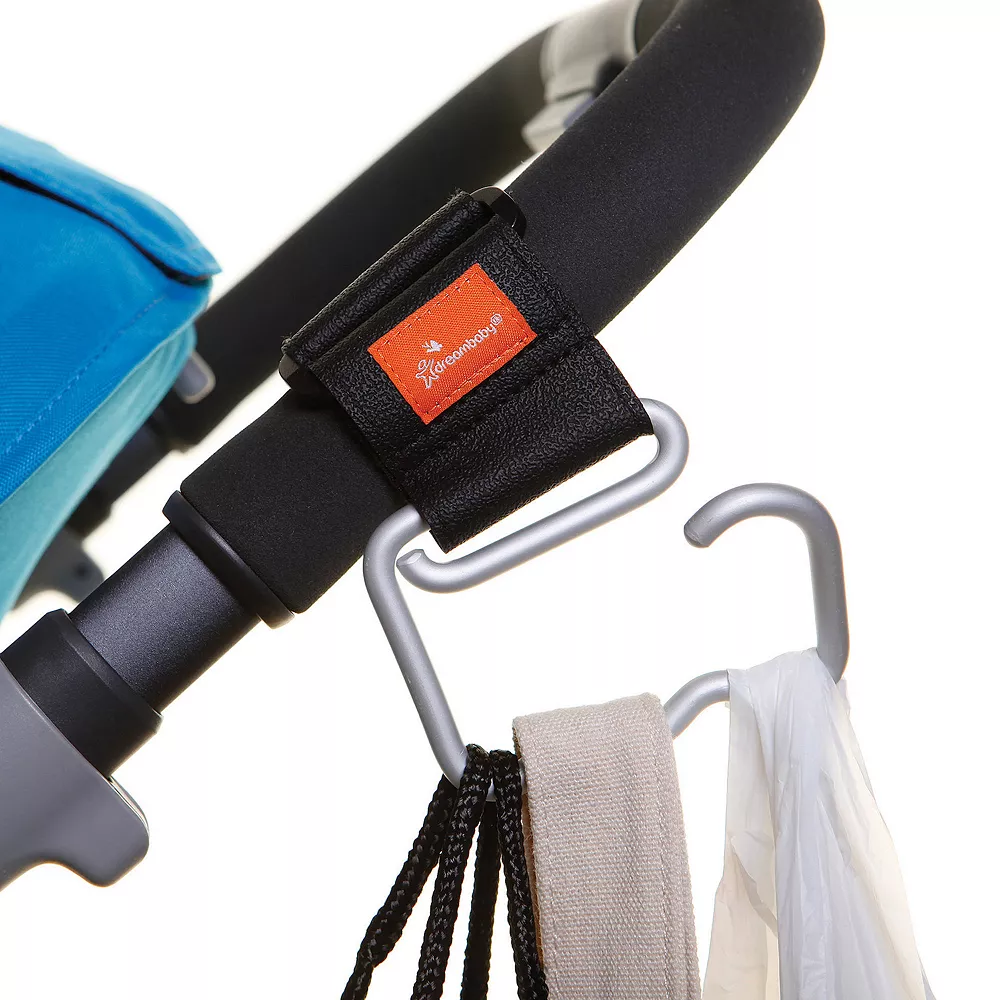 - The two hooks attach to the handles of your stroller or shopping cart with simple yet secure hook-and-loop closure