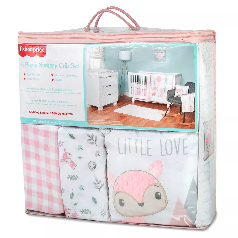 Fisher-Price defines sweet nursey décor with this Woodland Wonders 4-piece nursery bedding set.