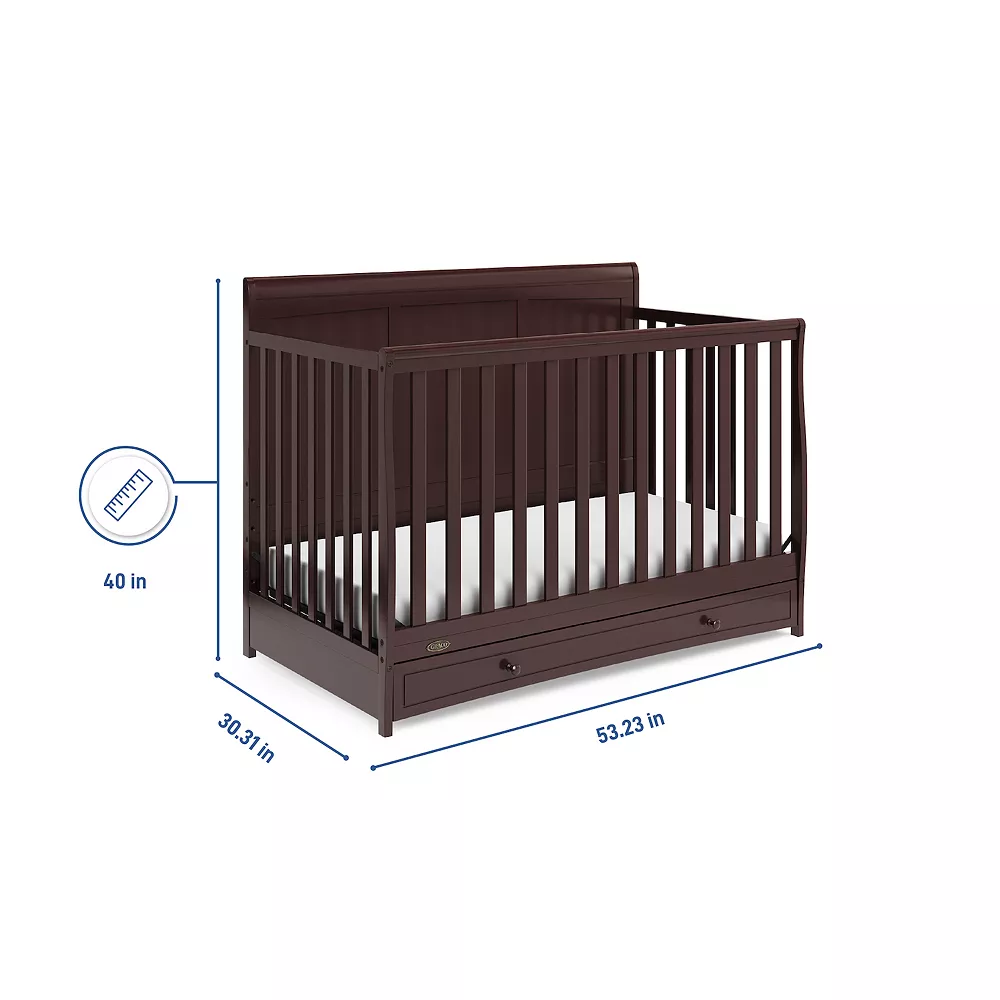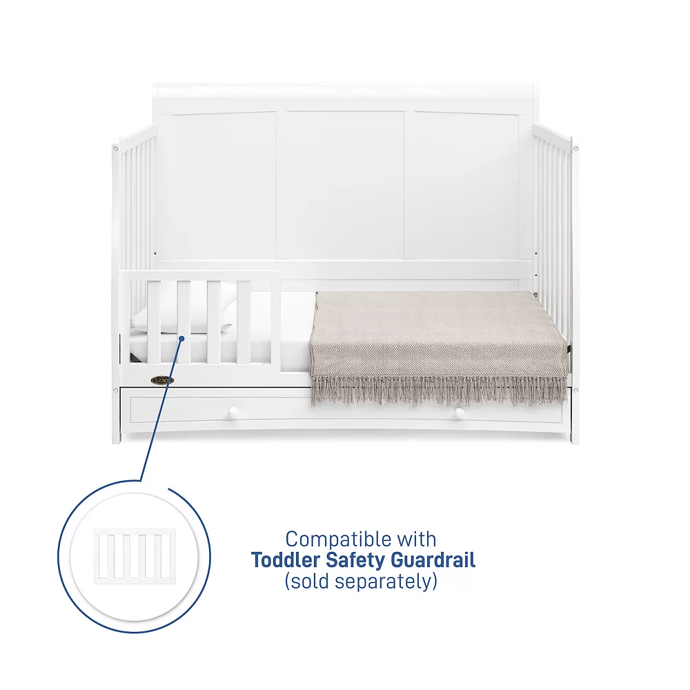 - Undercrib Drawer; Converts to a daybed, toddler bed, and full bed