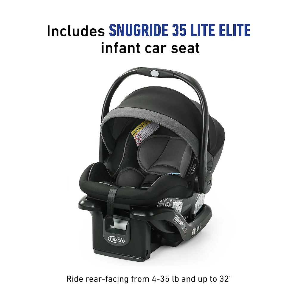 - Modes Nest Travel System includes the Graco SnugRide 35 Lite Elite Infant Car Seat, rear-facing from 4-35 lbs, and the stroller seat converts to infant pramette mode for comfortable strolls with baby from day one