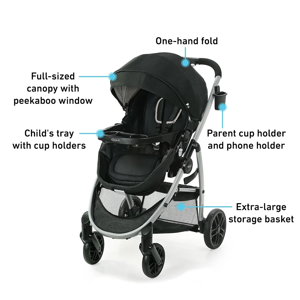 - Stroller accepts all Graco infant car seats, for an easy transition from car to stroller and use from birth as a car seat carrier (infant car seat sold separately)
