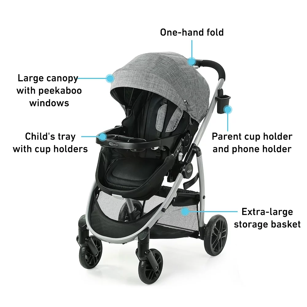 - For even more options, the travel system includes the Graco SnugRide 35 Lite DLX Infant Car Seat, and baby can ride parent-facing or forward-facing, thanks to a reversible stroller seat