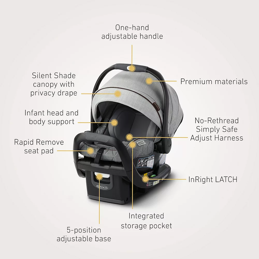 From the Midtown Collection, this Graco Premier SnugRide SnugFit 35 XT Infant Car Seat will be your top pick with all the bells and whistles.