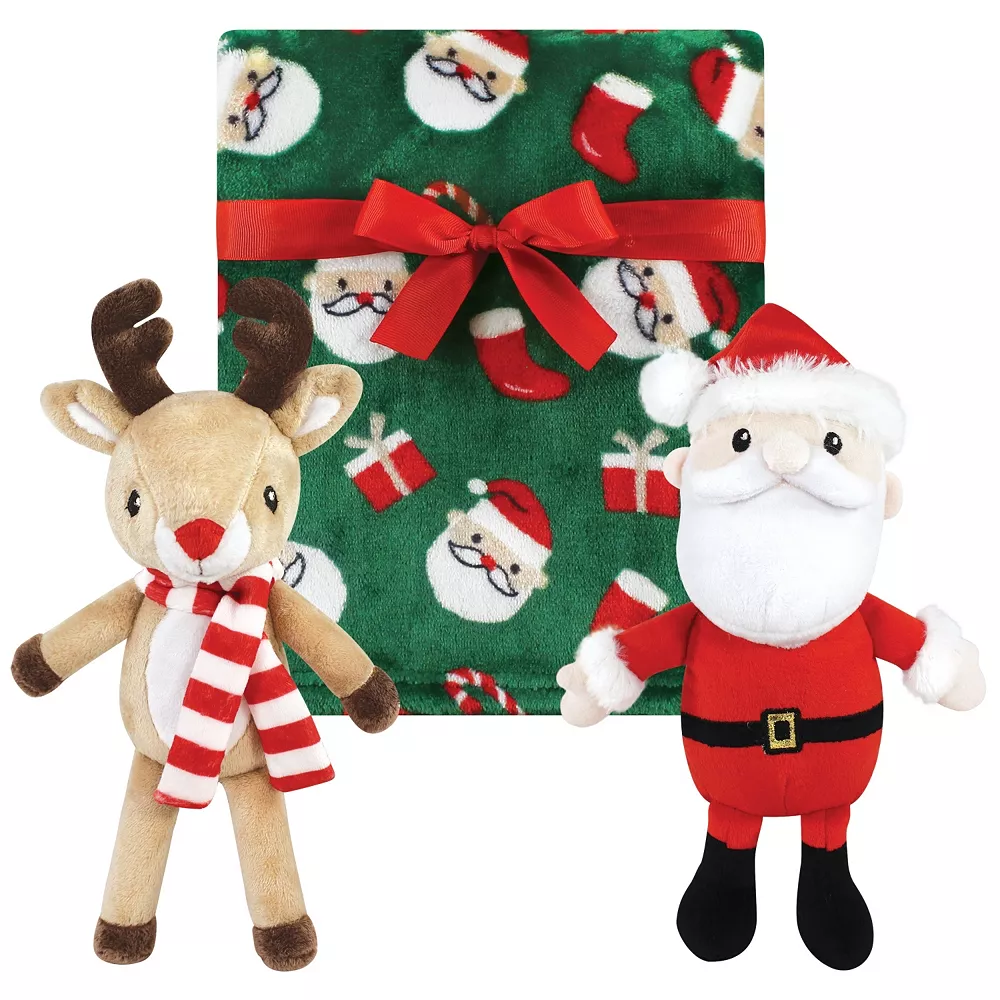 Hudson Baby plush blanket and toy set is soft and cuddly, and perfect to aid in child development. Hudson Baby plush blanket with toy is a great set for every baby to have because it is made of warm and cozy plush fabric that is soft and gentle on baby’s skin with a cute 3D toy your baby is sure to fall in love with. Our plush toy will keep baby calm and content with their favorite animal friend. The larger blanket measures a generous 30×36 inches, perfect for snuggling, cuddling, swaddling, or as a car seat or stroller cover. Hudson Baby offers the widest assortment in Christmas apparel, Christmas outfits and sweaters, Christmas pajamas, Christmas blankets and throw blankets, and Christmas socks. Our vast product assortment for babies, toddlers and kids make for great stocking stuffers for the whole family.