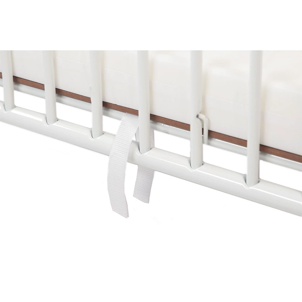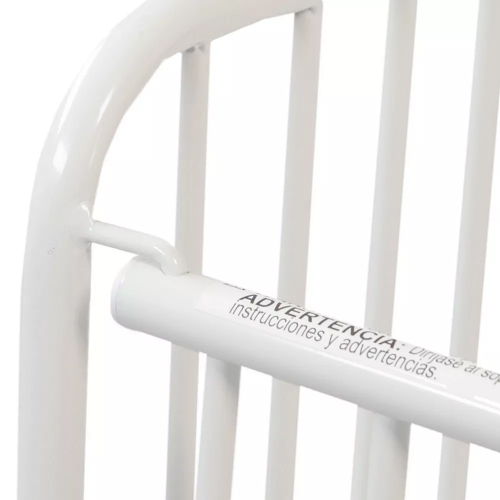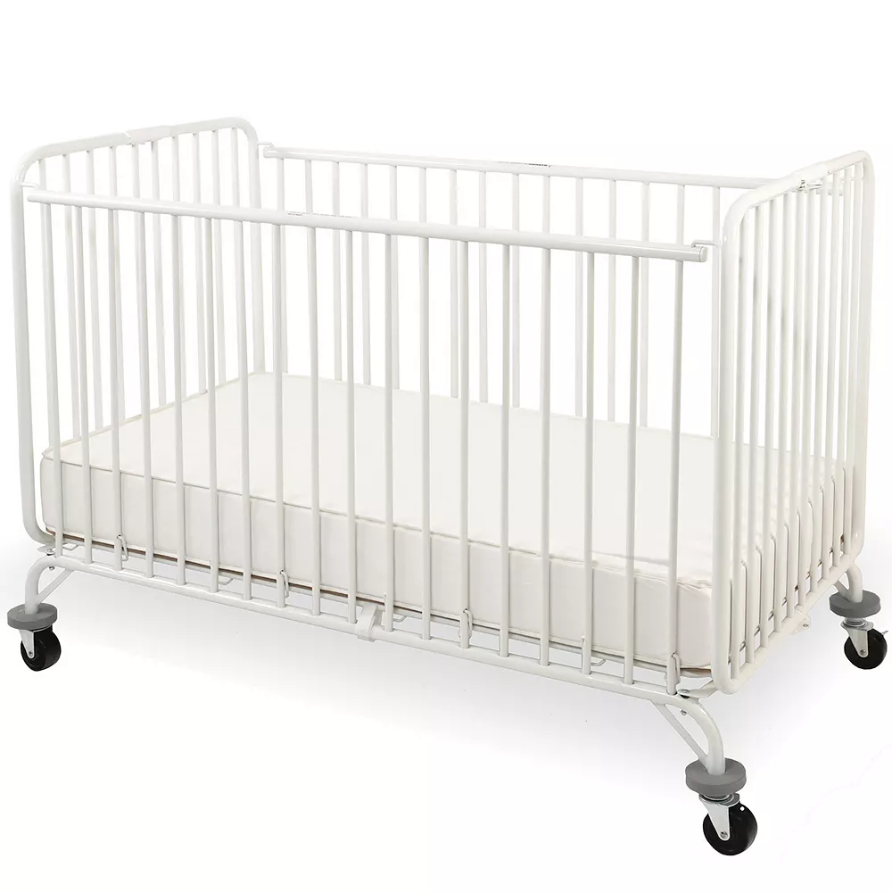 - Full-size metal crib easily folds when not in use