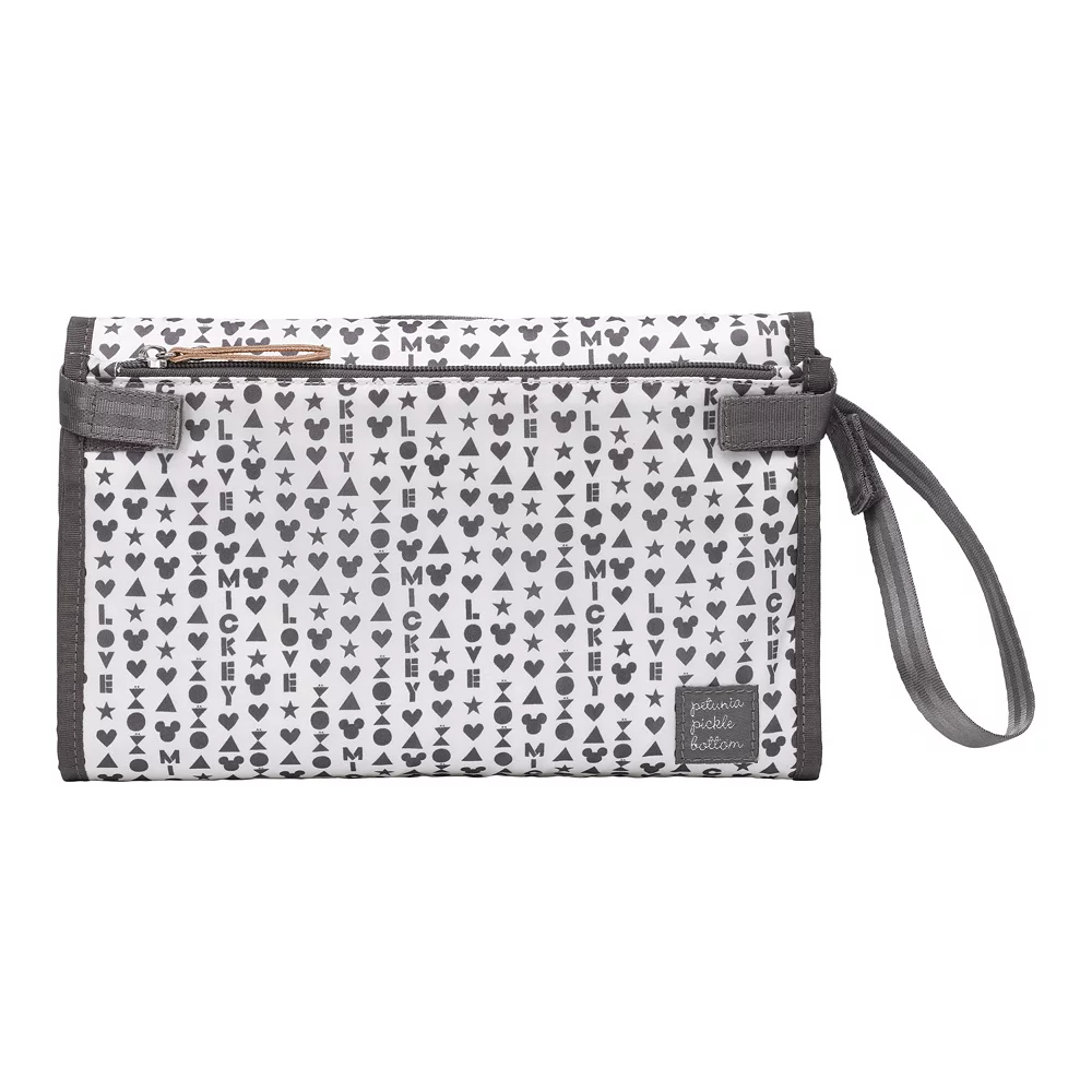Celebrate the magic of Disney’s Mickey Mouse in the latest collaboration with our friends at Disney Baby. This Nimble Diaper Clutch and Changer from Petunia Pickle Bottom is outfitted in a cheerful microprint that spells out love for Mickey Mouse fans big and small, and perfectly coordinates with the other bags and accessories in the Love Mickey Mouse collection. A clever solution to diaper changes on-the-go, this versatile and compact micro-bag can be carried alone or in a larger diaper bag, and offers maximum efficiency with a pocket that doubles as a pillow, a fold-out changing pad, and an easy-to-clean exterior.