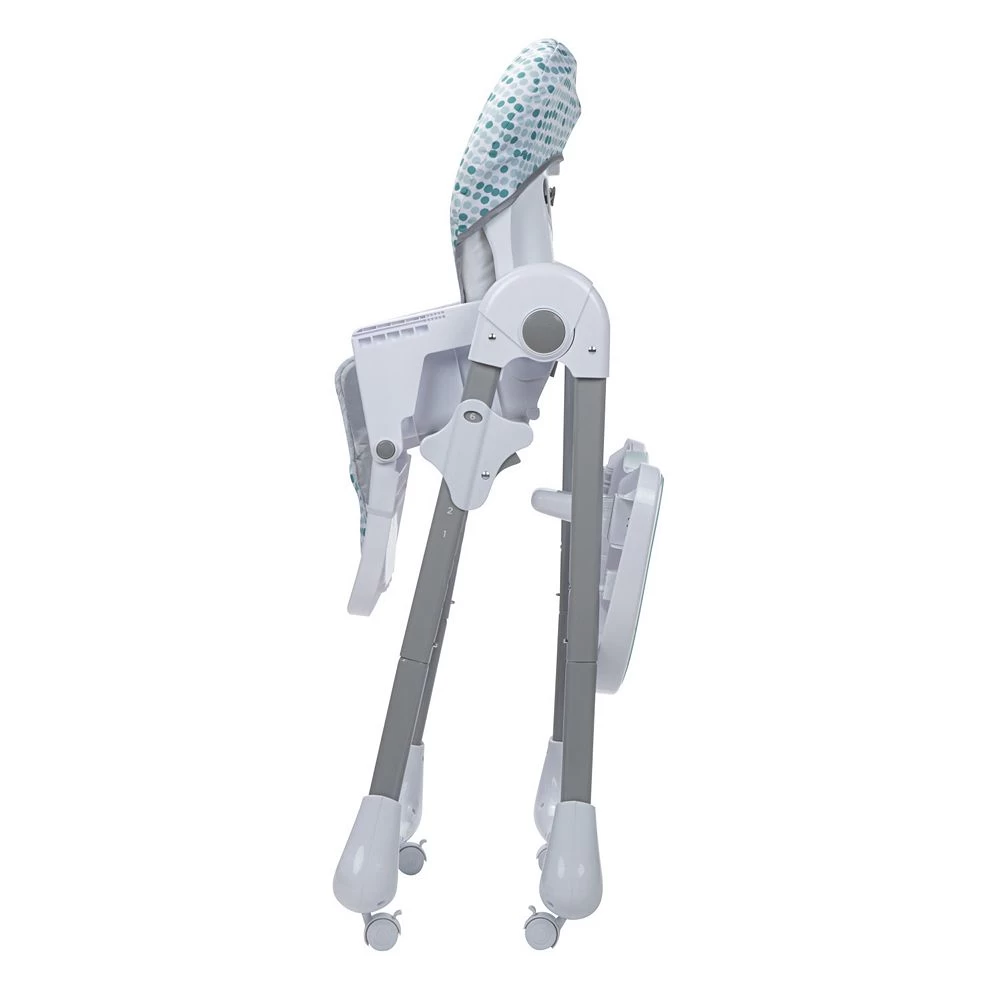 - If you need to free up some space, you can easily roll the high chair out of the way and store it upright