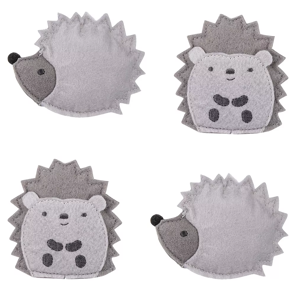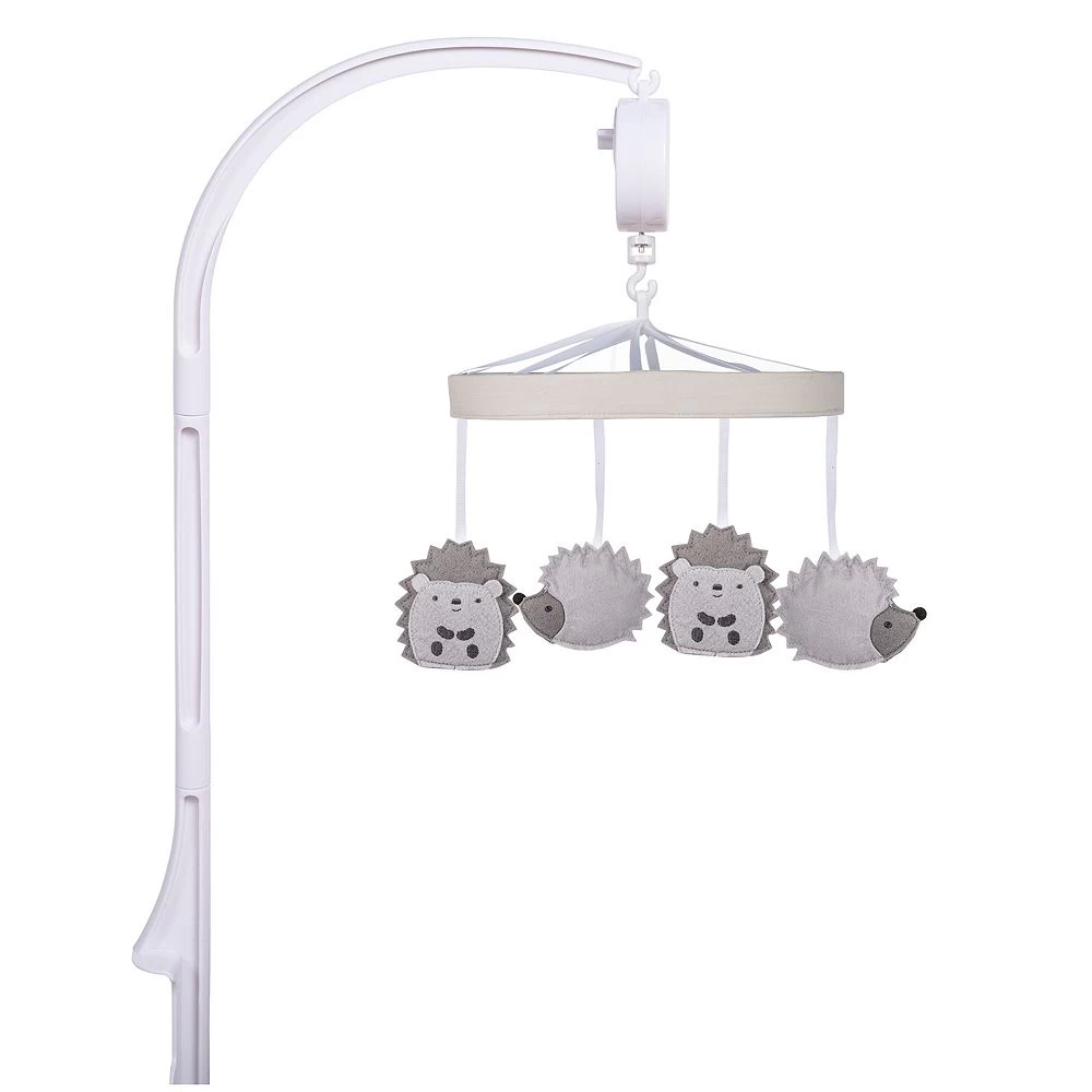 Encourage eye tracking and sound perception skills with the Hedgehog Musical Crib Mobile by Sammy & Lou. Featuring a gray, 9-inch banded mobile ring, this mobile has two different gray hedgehogs suspended from decorative white ribbons to slowly rotate to Brahms’ Lullaby. This mobile coordinates with Sweet Autumn and Enchanted Garden bedding collections by Sammy & Lou.