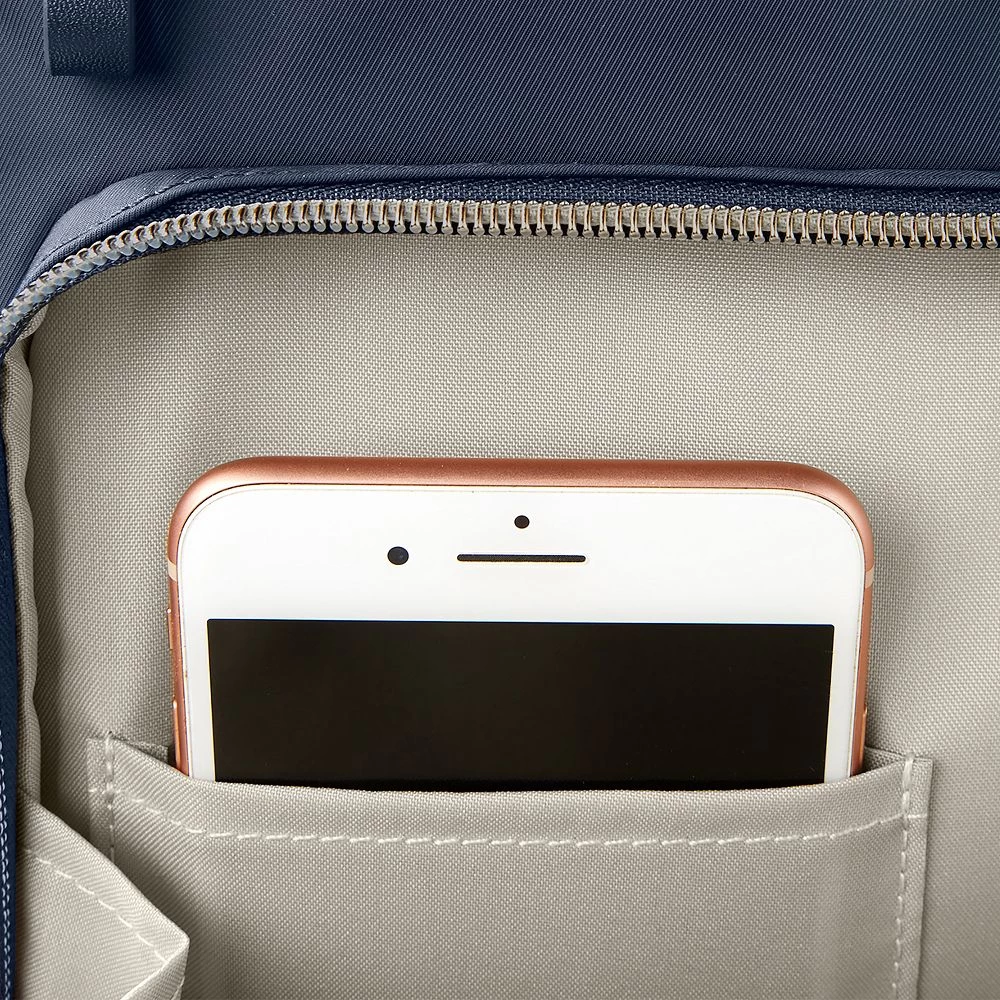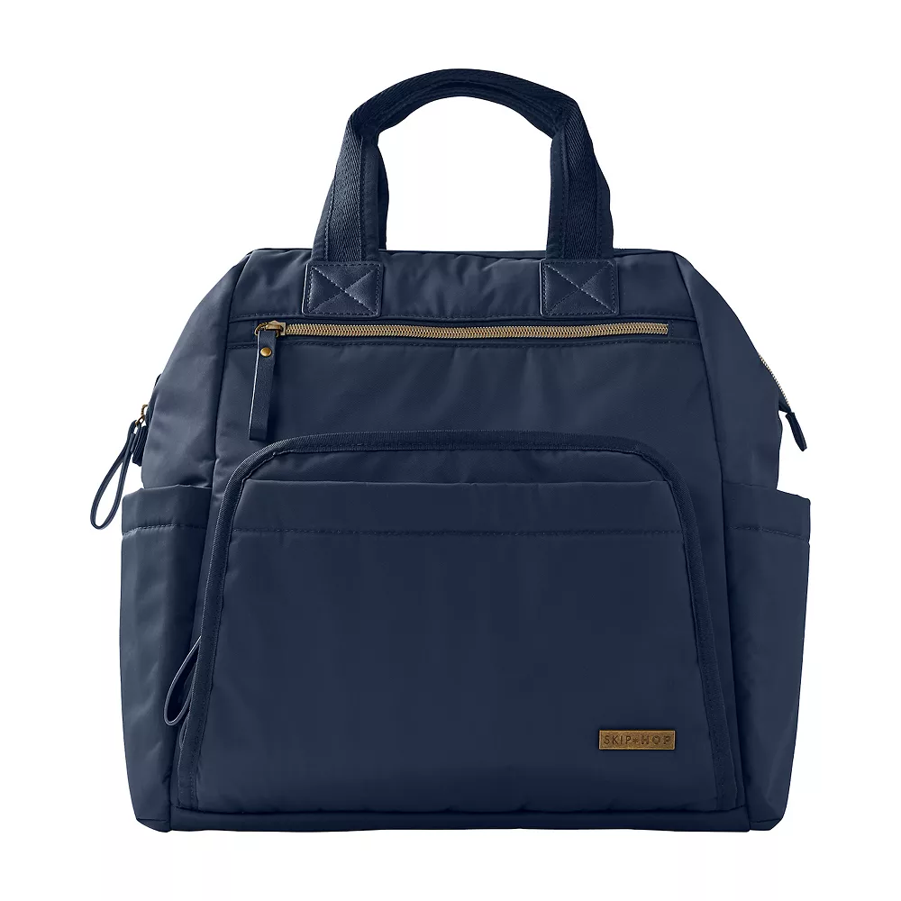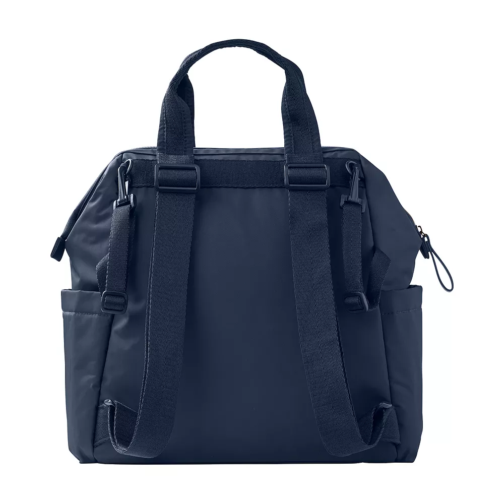 - Easy-grab double top handles and adjustable backpack straps make this user-friendly look the ultimate in hands-free ease