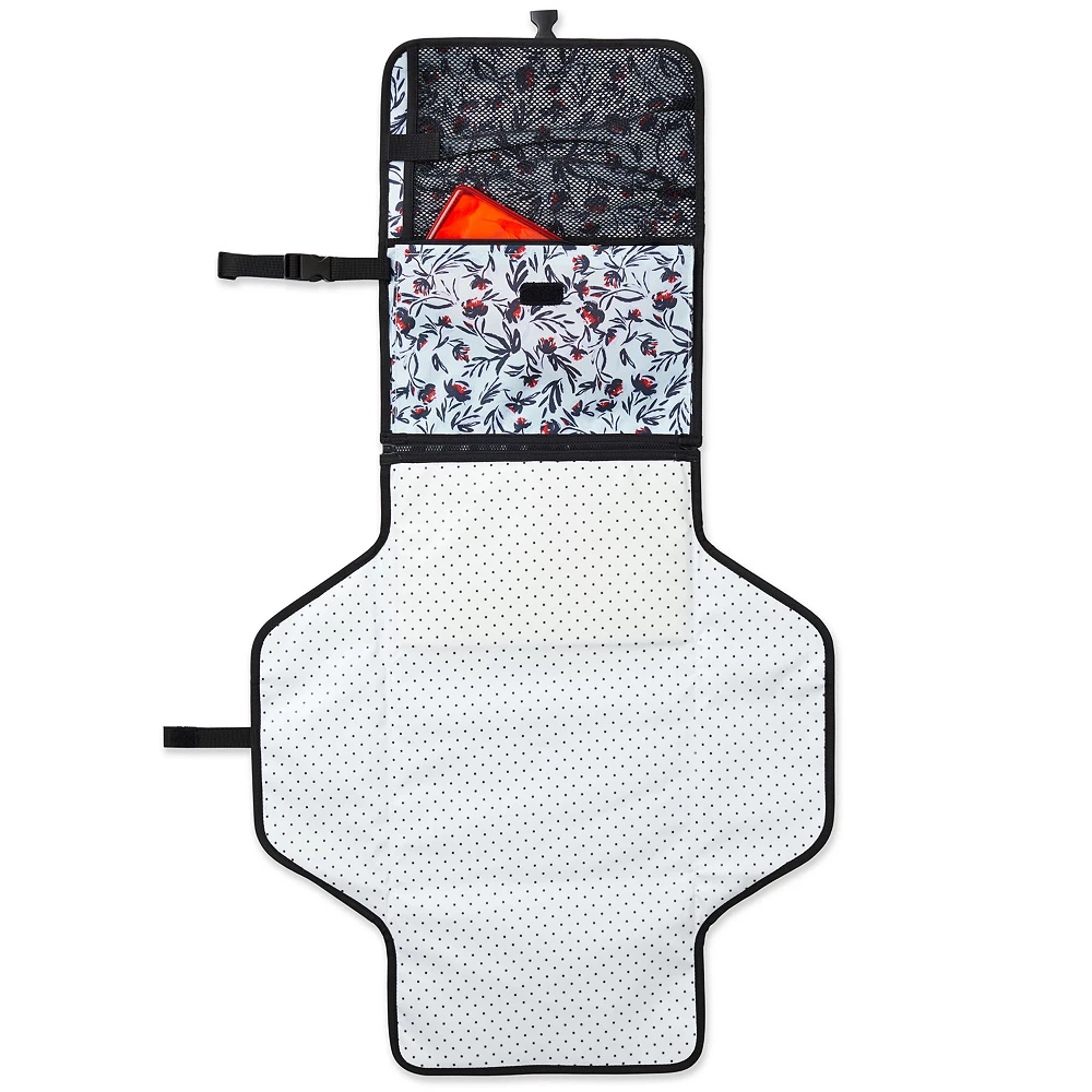 - Durable, wipe-clean changing pad zips on and off the clutch for easy clean-up and all-in-one convenience.