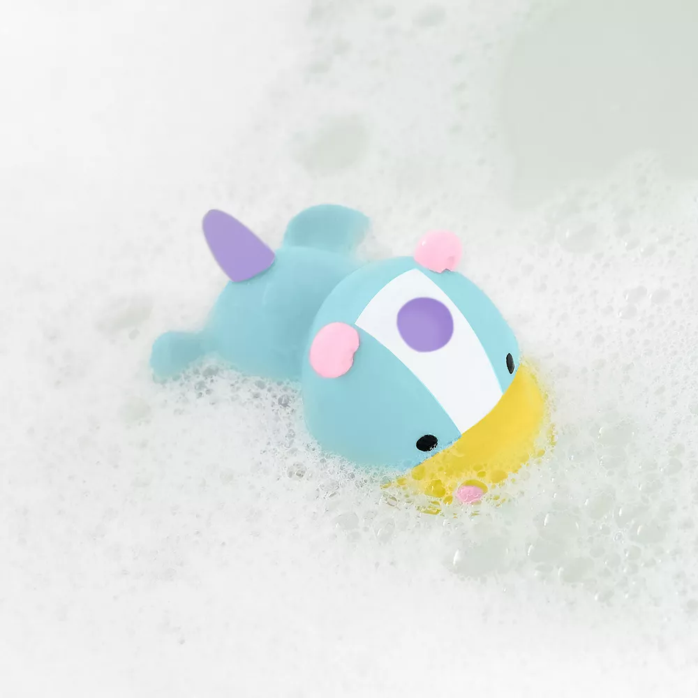 - Unicorn toy lights up when it touches the water for extra sensory bath time fun!