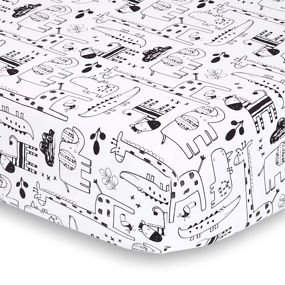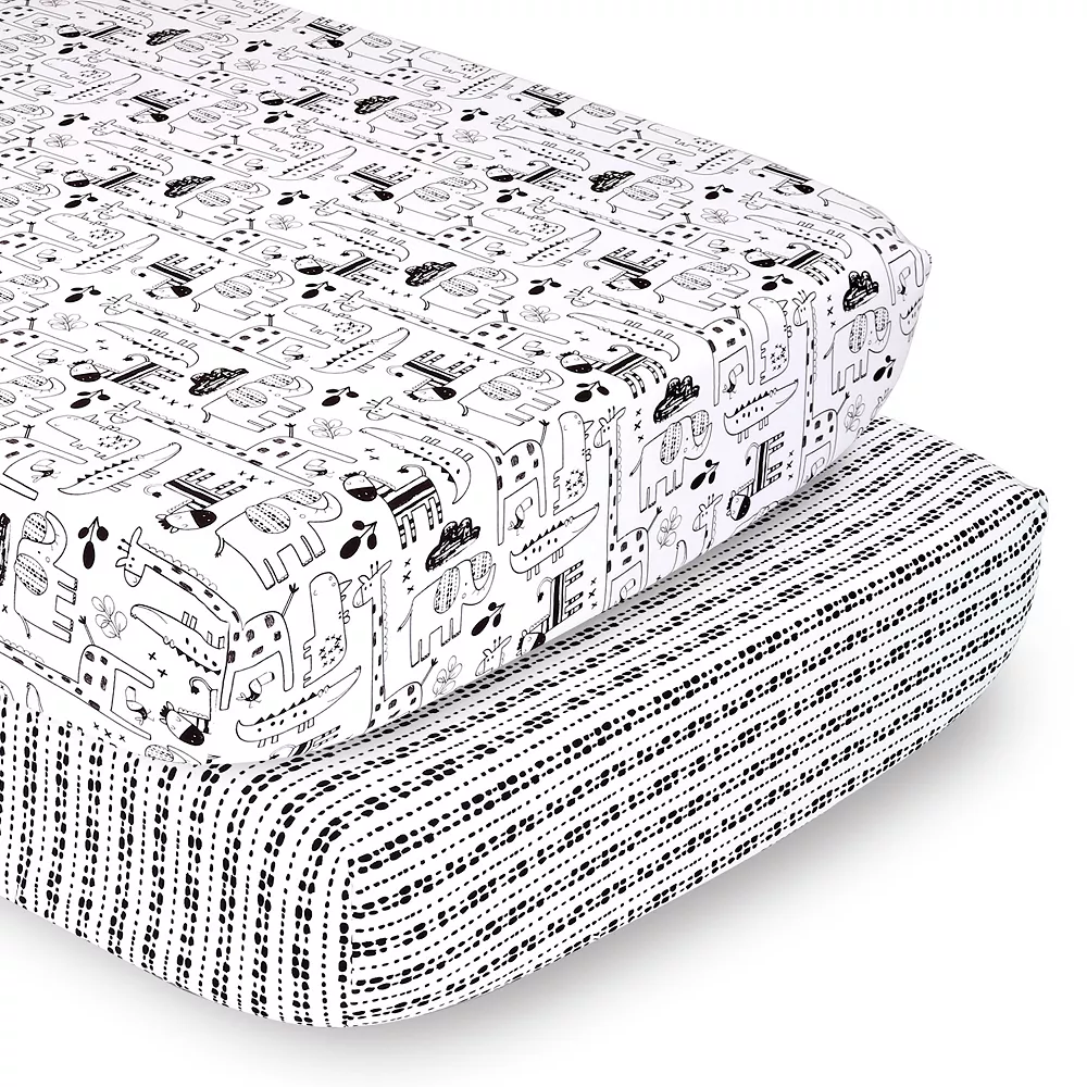 Perfect for your little one’s modern nursery, these The Peanutshell crib sheets offer a mix of animals and striped patterns.