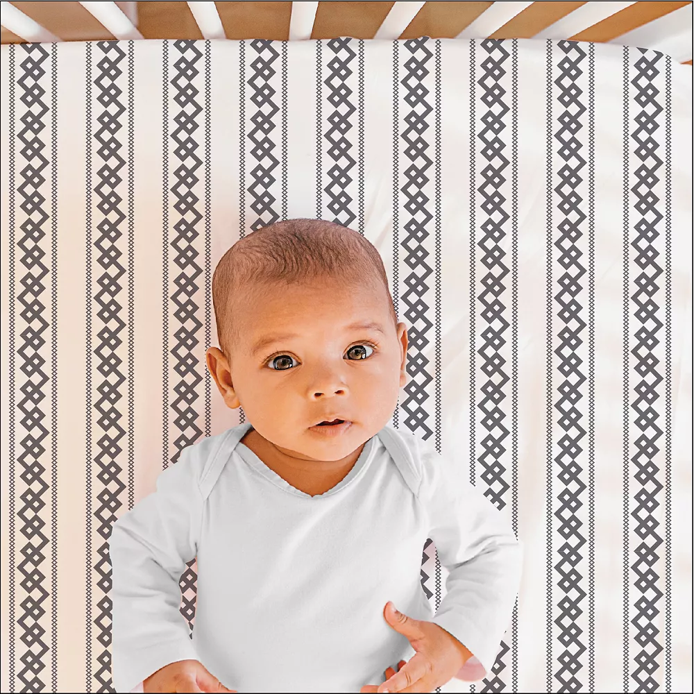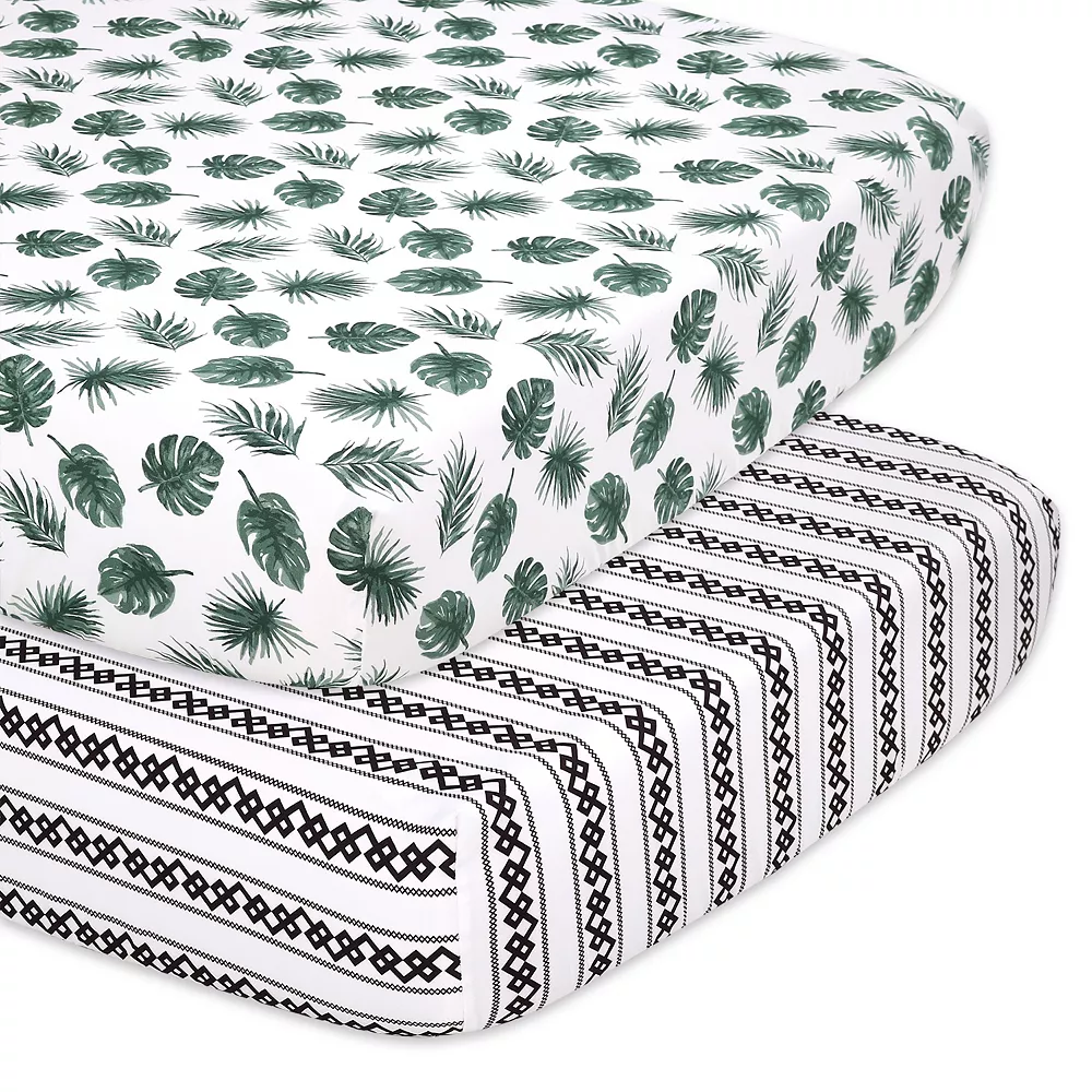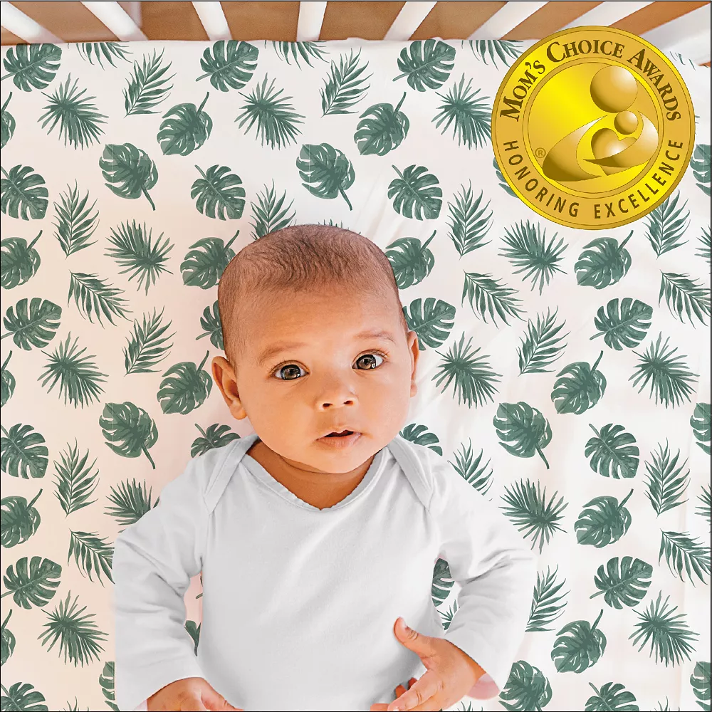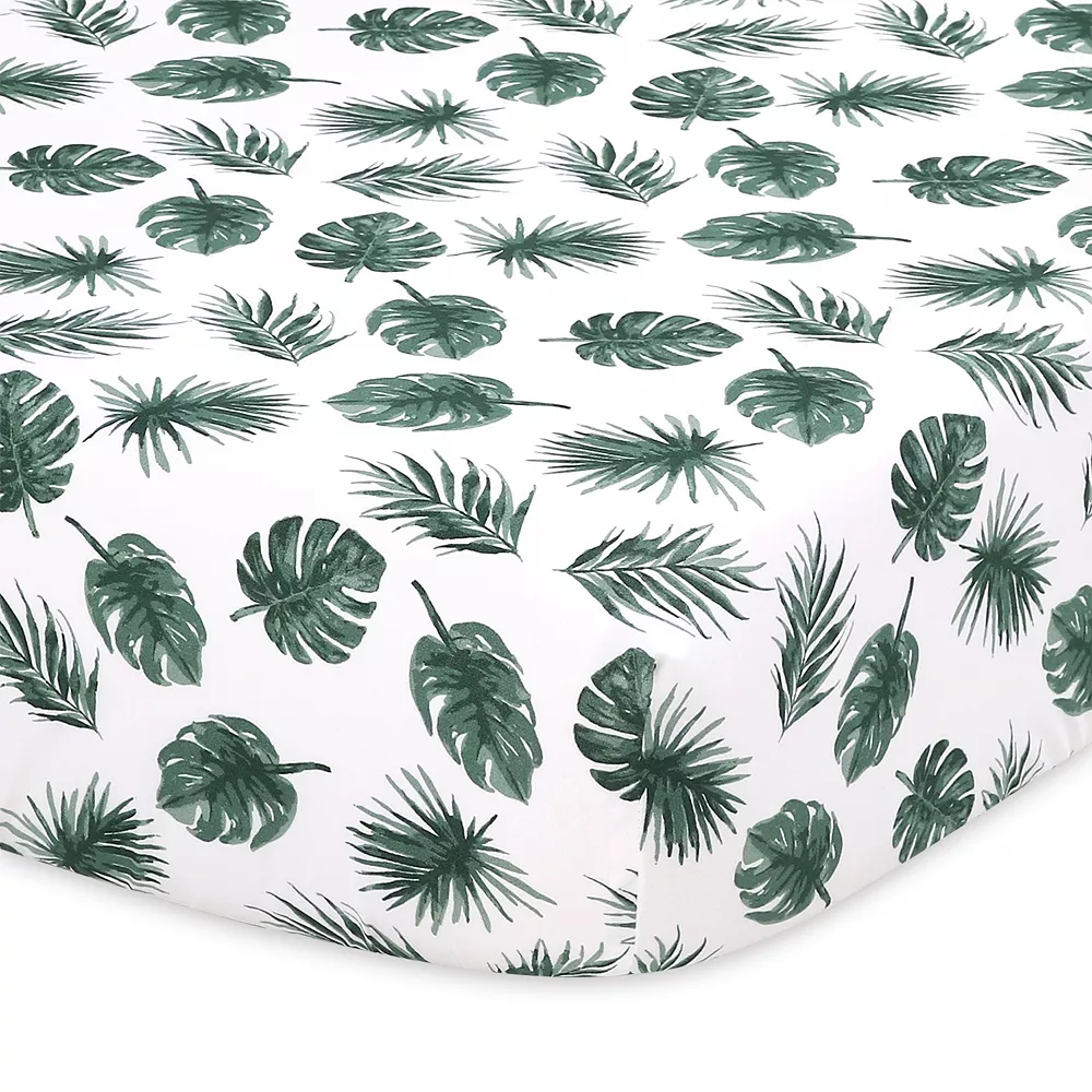 Your baby will be rejuvenated sleeping with the lovely fronds on this crib sheet set from The Peanutshell.