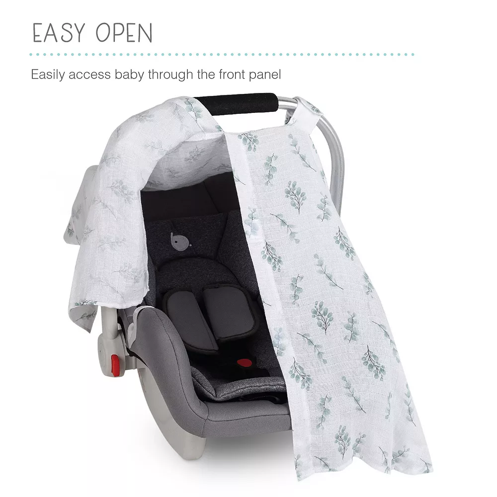 Shield baby from the elements and provide privacy for your little one when traveling with The Peanutshell Eucalyptus Muslin Canopy Car Seat Cover.