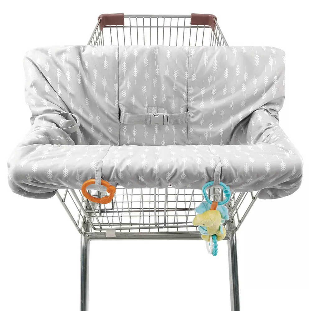 - Easily fits on most standard size shopping carts and high chairs, with a detachable safety strap and two toy loops