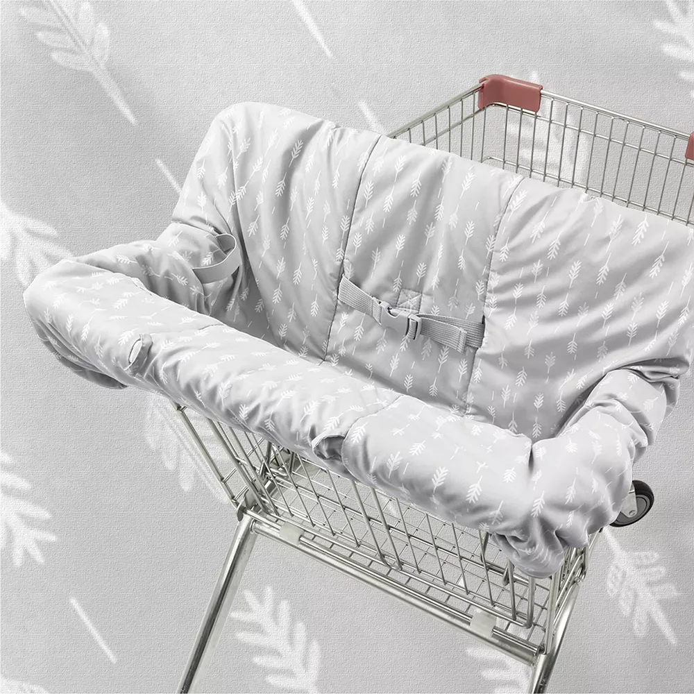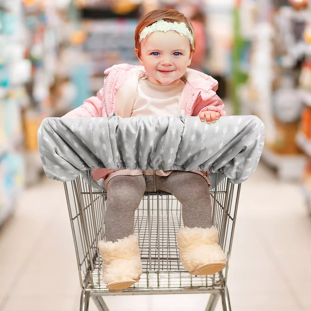 The Peanutshell Ditsy Leaf Shopping Cart & High Chair Cover is a versatile way to provide a safe and clean environment for baby at the market or dining-out.