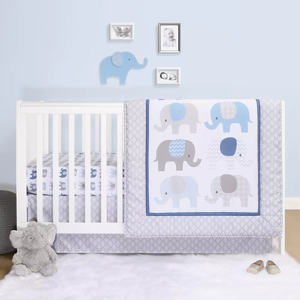 If your little one has an elephant-themed nursery, this crib bedding set by The Peanutshell is the one for you.