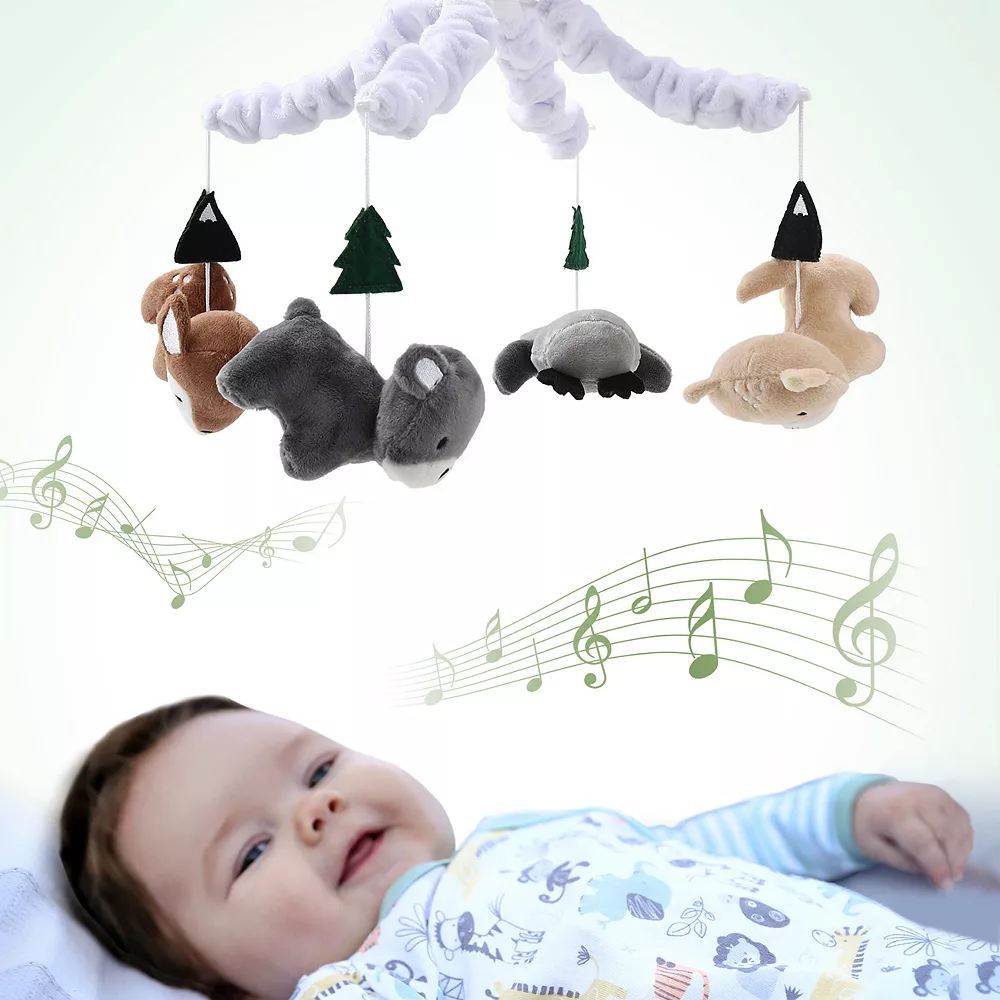 Getting back to nature has never been such fun as with The Peanutshell Woodland Plaid Musical Mobile.
