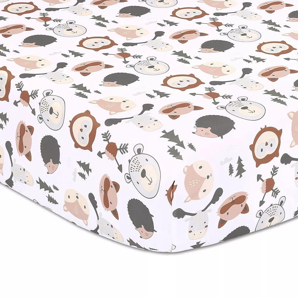 This crib bedding set by The Peanutshell features adorable woodland creatures with a coordinating quilt, crib sheet and bed skirt.