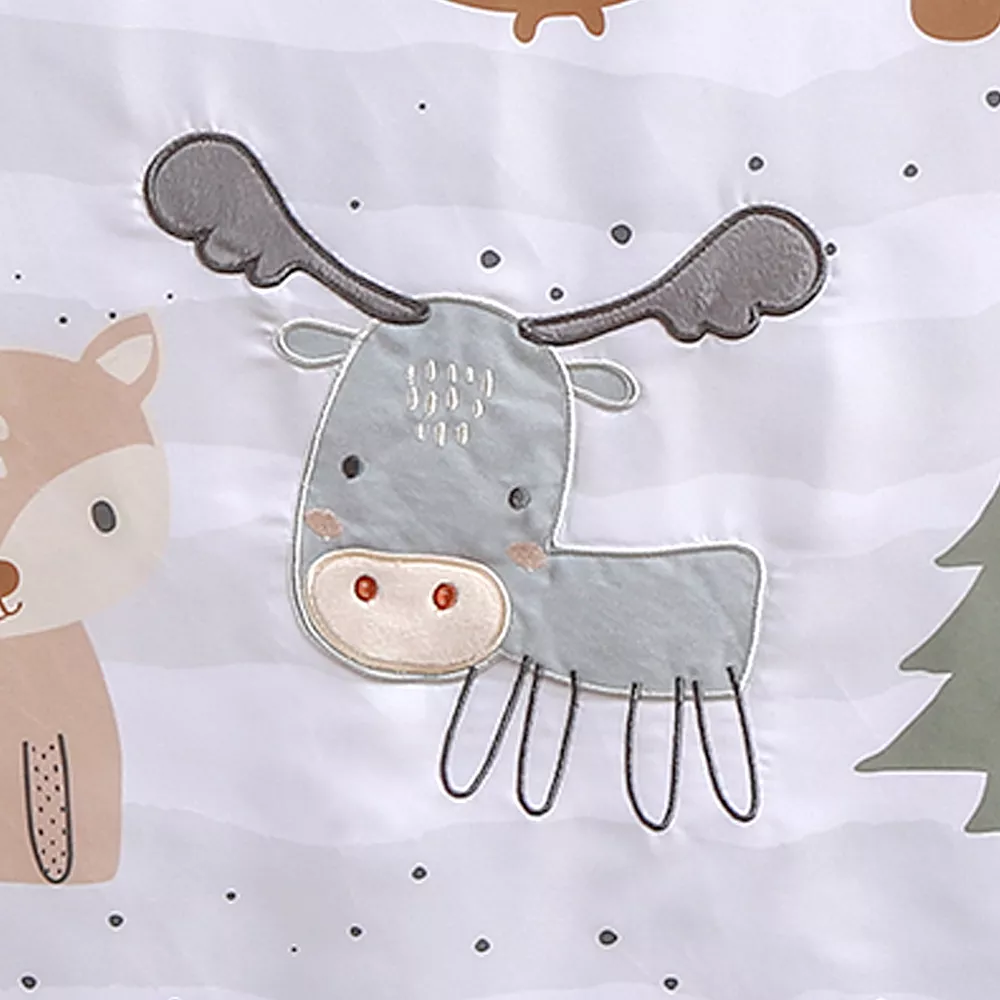 - Quilt has a center panel combining owls, a hedgehog, fox, raccoon, and even a moose created from appliqued fabric and embroidery, bringing these characters to life