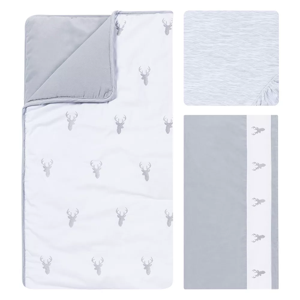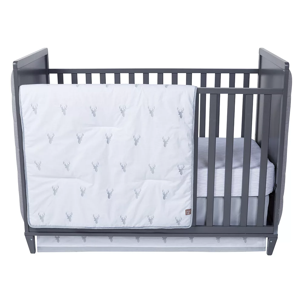 Bold style easily incorporates to your baby’s nursery with this Trend Lab stag head bedding set.