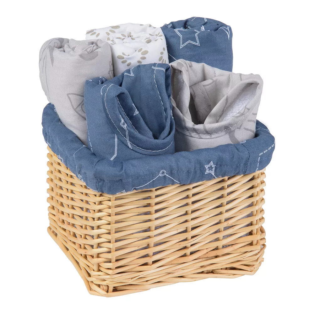 - 2 Deluxe Bibs, 3 Deluxe Burp Cloths, Basket Liner, Willow Basket