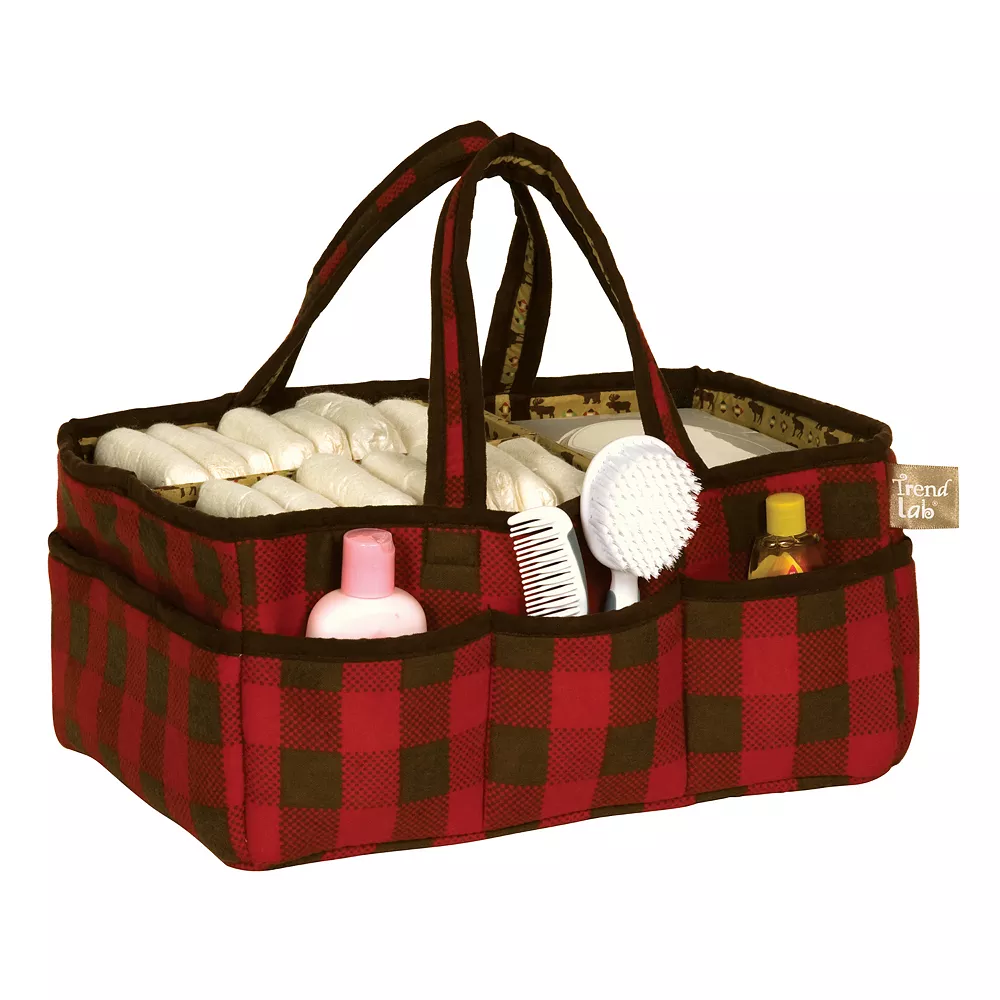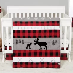 Featuring moose and bear graphics, these Trend Lab boys’ bedding coordinates give his nursery fun, outdoorsy style. In tan/red.