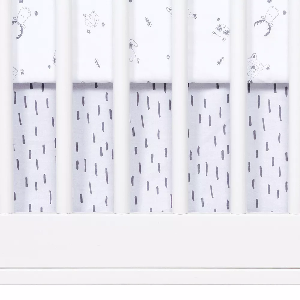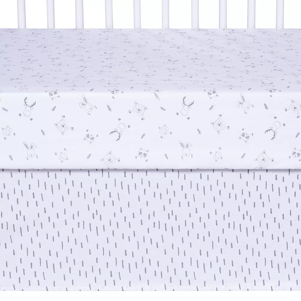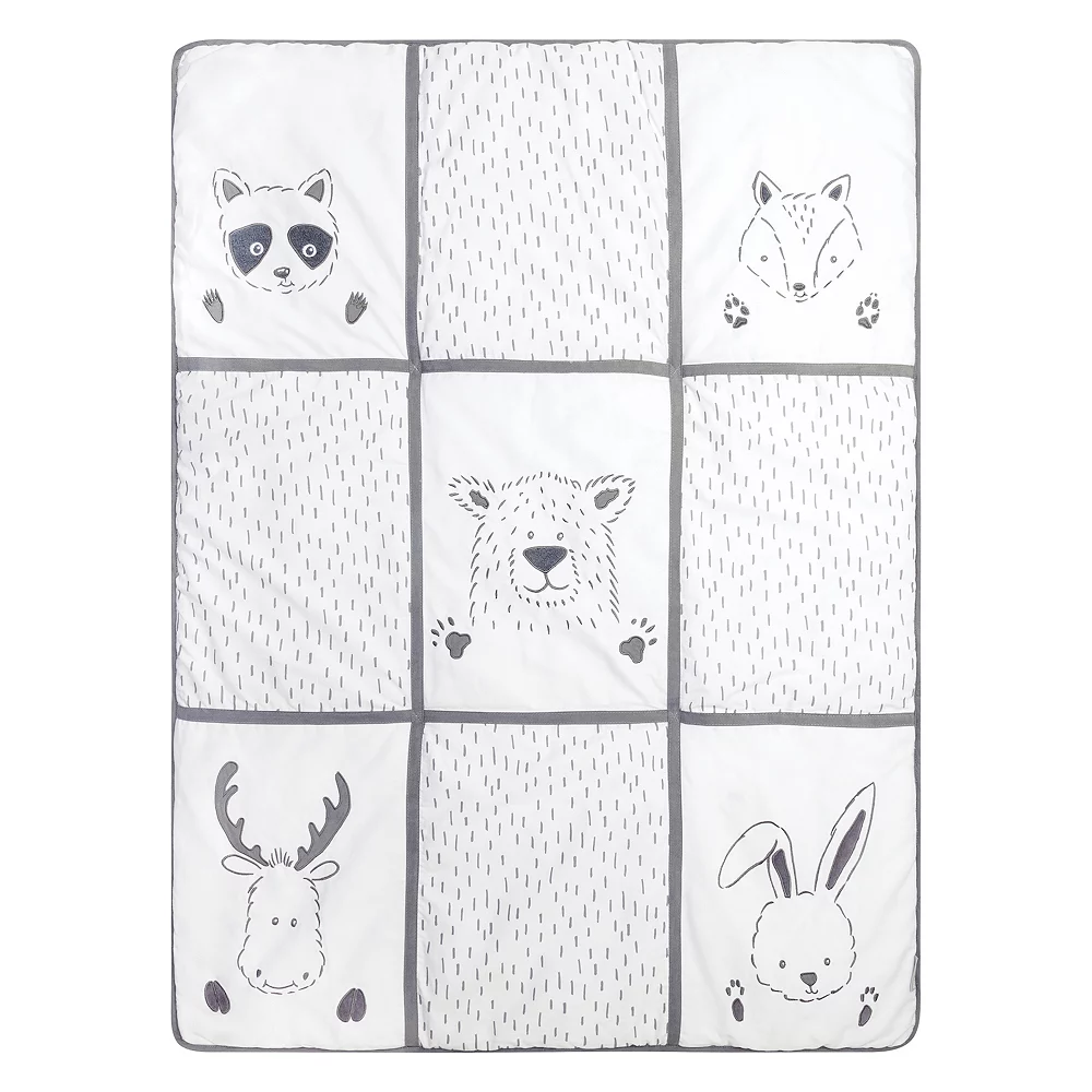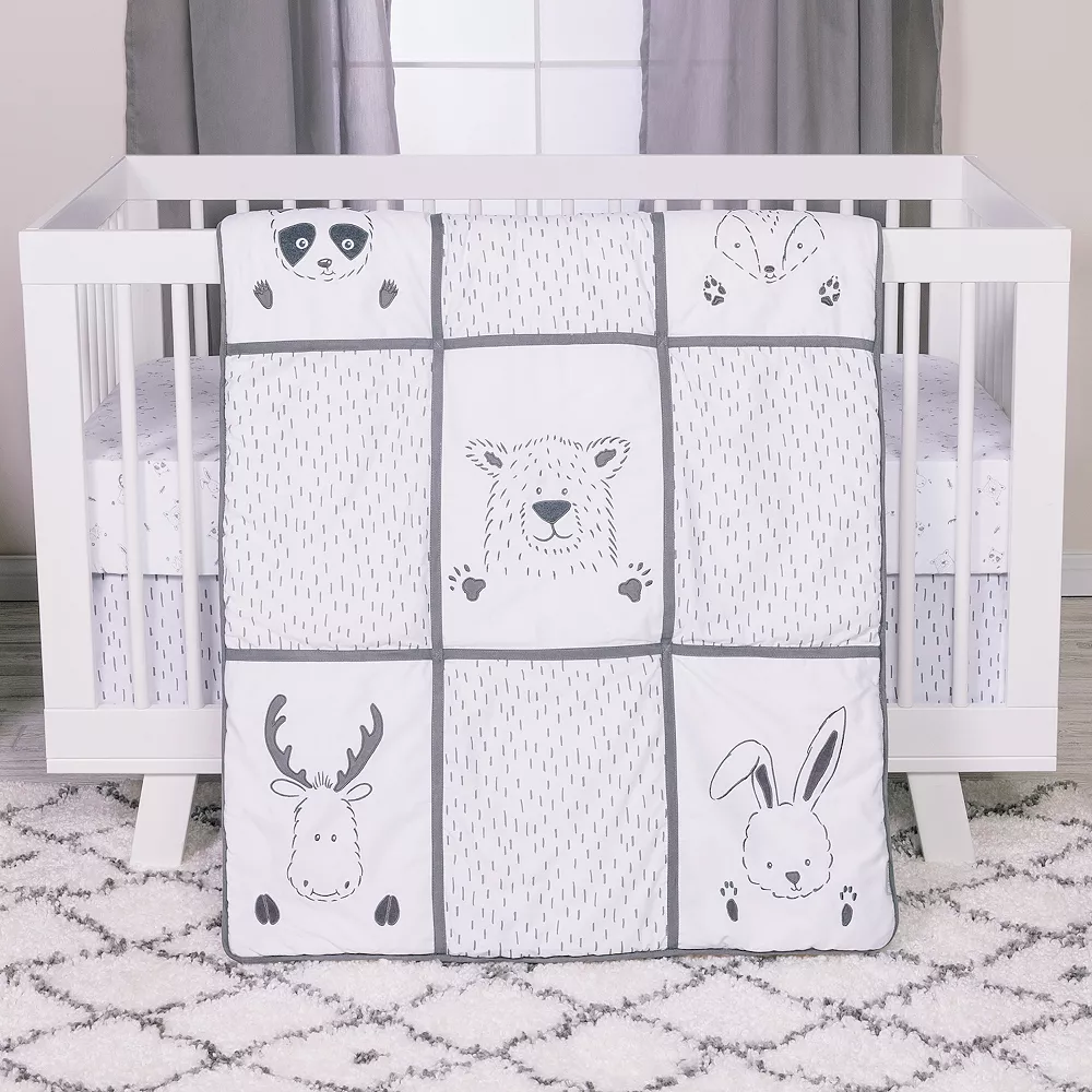 Tie your little one’s nursery together with this 3-piece crib bedding set featuring bears, bunnies, raccoons, fleece and corduroy details.