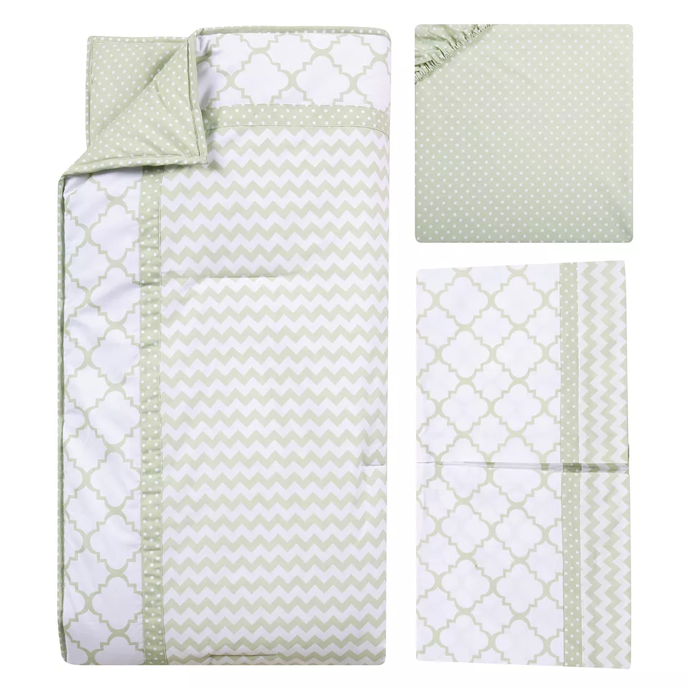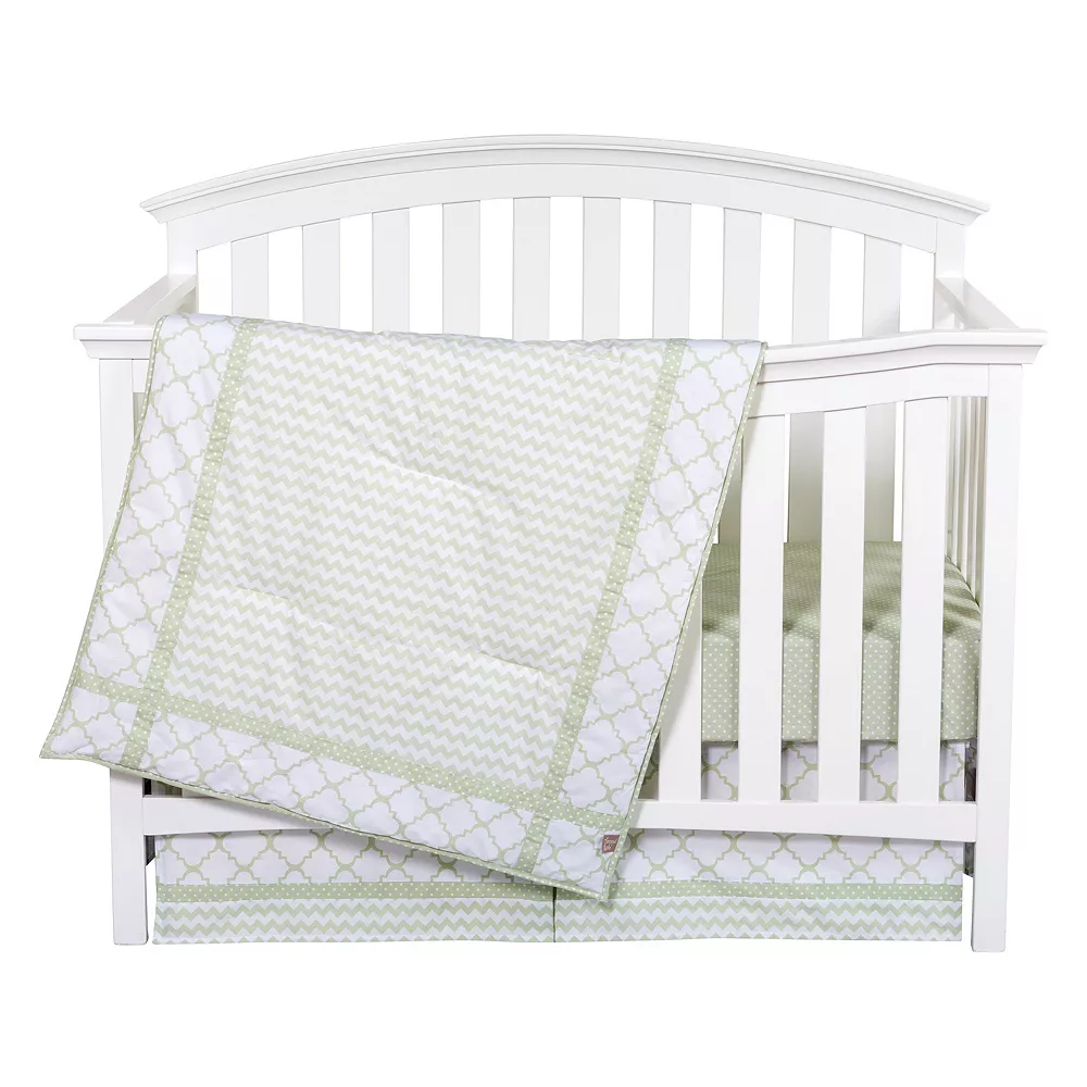 Add classic charm to your little one’s nursery with this Trend Lab crib bedding set, featuring chevron, polka-dot & quatrefoil designs. In green/white.