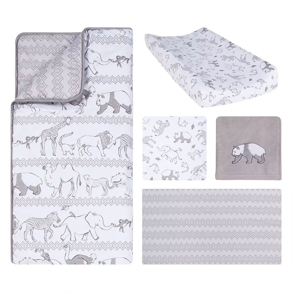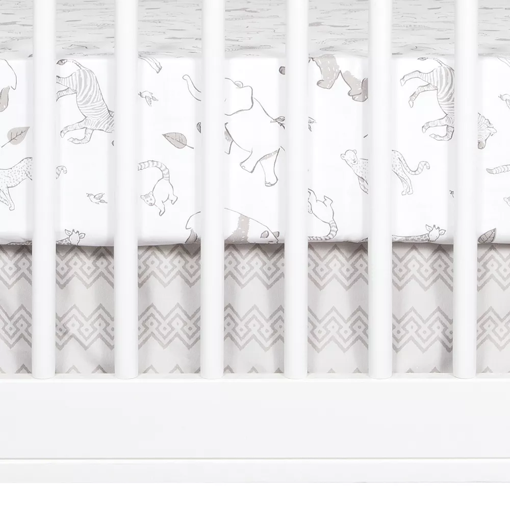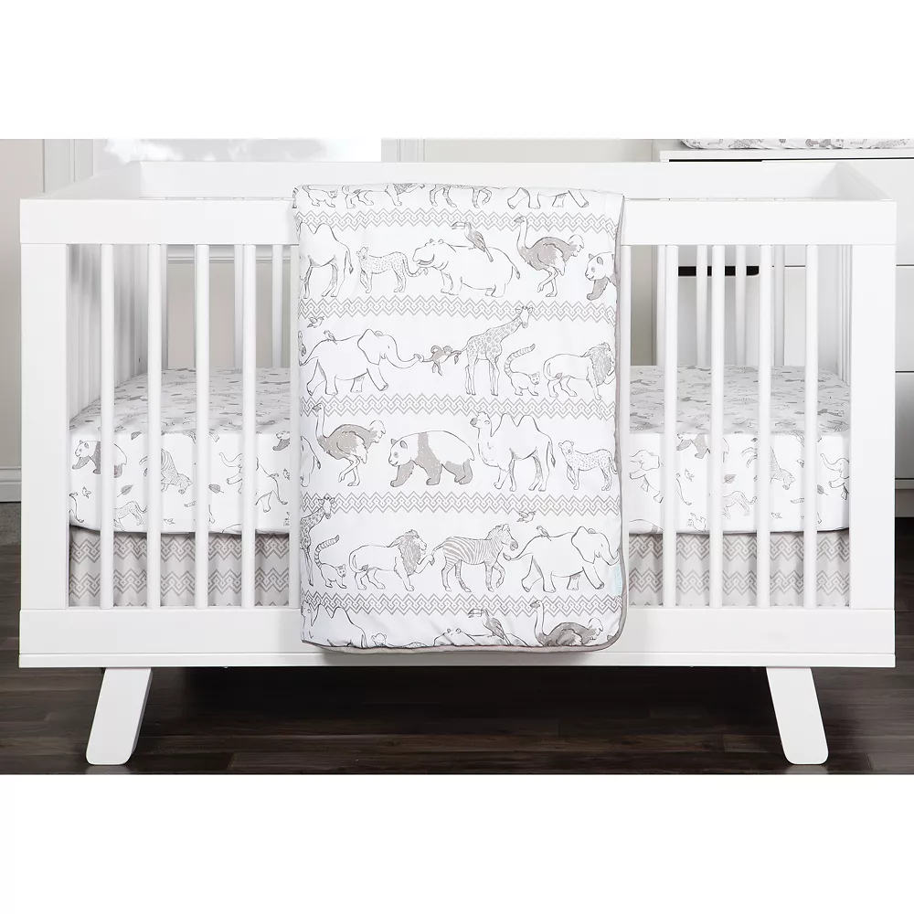 Perfect for the animal lovers, this Trend Lab Waverly Congo Line crib bedding set will be so much fun with zoo animal graphics. In white.